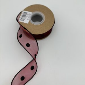 Лента органза, ГОРОШИНЫ, 4cmx10yards, цв.бордовый/черный