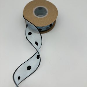 Лента органза, ГОРОШИНЫ, 4cmx10yards, цв.голубой/черный