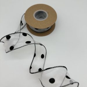 Лента органза, ГОРОШИНЫ, 4cmx10yards, цв.белый/черный