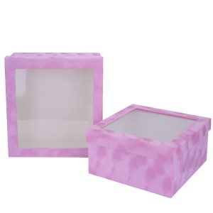 Набор коробок “Квадрат” 25.6*11.9, 23.6*10.9см. Велюр с прозрачной крышкой Розовый 2шт