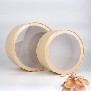 Набор коробок 2в1 шайба H15хD30 / H13хD25см, с окошком, завальц.край, сливочный