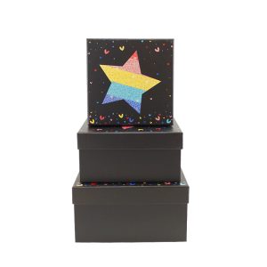 Набор коробок 3 в 1 “Звездочки на черном” с тиснением / квадрат / 20*20*10,5 / 18*18*9 / 15,5*15,5*