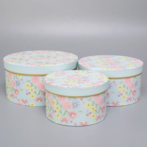 Набор коробок 3в1 круг H11,5хD22 / H10,5хD19 / H9,5хD16см, Цветы