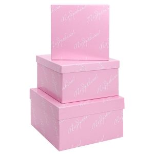 Набор коробок 3в1 квадрат 19,5х19,5х11 / 17,5х17,5х10 / 15,5х15,5х9см, Поздравляю, розовый