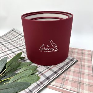 Набор коробок стандарт с серебряным тиснением “Любимому учителю”, с пером, 5в1, (бордовый) Россия