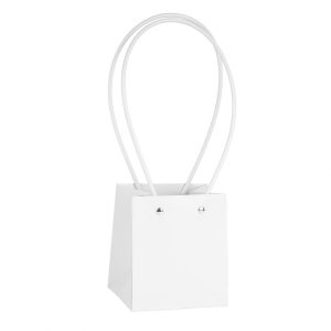 Пакет под цветы 11,5*10,5*13см Квадрат Белый глянец с пластиковой ручкой т.м.250