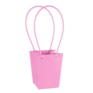 Пакет под цветы 12*12*8см Конус Розовая-лаванда с пластиковой ручкой т.м.10/250