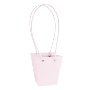 Пакет под цветы 11,5*11,5*13см Квадрат Цветы Пудровый с пластиковой ручкой 1шт