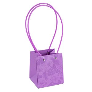 Пакет под цветы 11,5*11,5*13см Квадрат Цветы Сиреневый с пластиковой ручкой 1шт