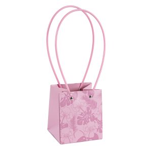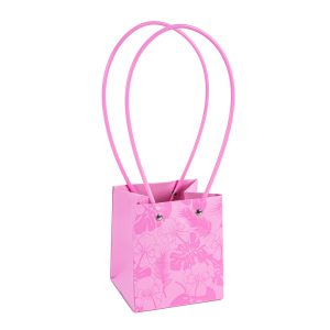 Пакет под цветы 11,5*11,5*13см Квадрат Цветы Розовый с пластиковой ручкой 1шт