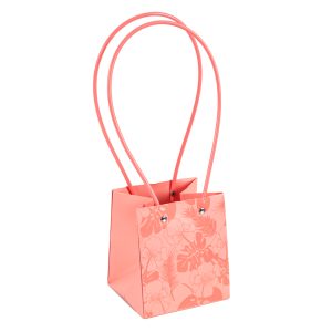 Пакет под цветы 11,5*11,5*13см Квадрат Цветы Персиковый с пластиковой ручкой 1шт