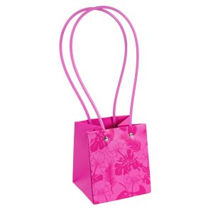 Пакет под цветы 11,5*11,5*13см Квадрат Цветы Фуксия с пластиковой ручкой 1шт