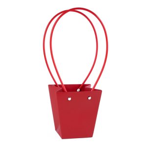 Пакет под цветы 12*12*8см Конус Красный с пластиковой ручкой т.м.250