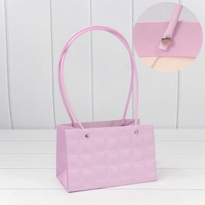 Пакет подарочный “Ваза для цветов” 19*12*10,5 “Квадраты” Светло-сиреневый 1/10 1/150