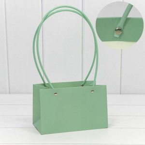 Пакет подарочный “Ваза для цветов” 19*12*10,5 Бледно-зелёный 1/10 1/150