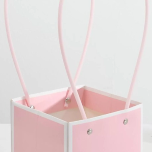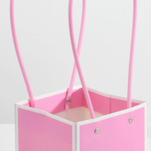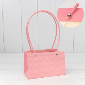 Пакет подарочный “Ваза для цветов” 19*12*10,5 “Квадраты” Тёмно-розовый 1/10 1/150