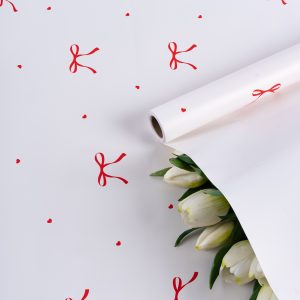 Пленка матовая “Лента любви” 57см*10м Белая с красными бантами-06 т.м.30
