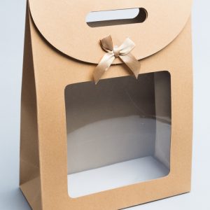 SALE Пакет подарочный с прозрачным окном 29х22х12см кремовый