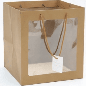 Пакет подарочный с прозрачным окошком, 31*31*31 см, 1шт, крафт