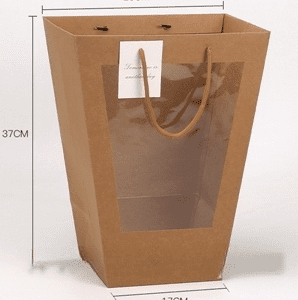 Пакет подарочный трапеция с прозрачным окошком, 17*28*37 см, НАБОР 5шт, крафт