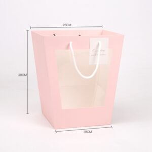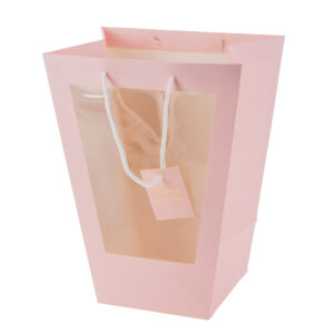 Пакет подарочный трапеция с прозрачным окошком, 17*28*37 см, НАБОР 5 шт, розовый
