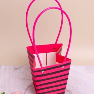 Сумочка для цветов 13х 9,5х15,5см К полосы на малиновом