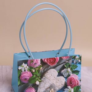Сумочка пластик для цветов 22х10,5х13,5см 779 сердце с цветами