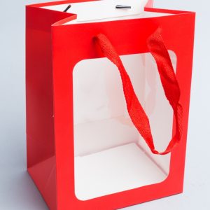 Сумочка крафт с прозрачным окном 25х18х13см красный