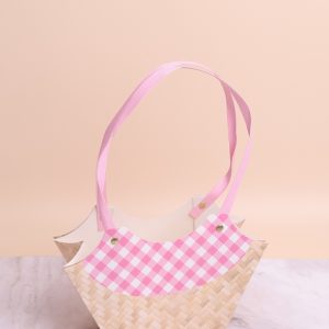 Сумочка для цветов трапеция H15,5х13х9,5см монограмма розовый
