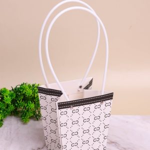 Сумочка для цветов трапеция H15,5х13х9,5см монограмма белый