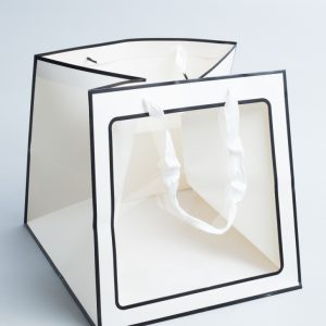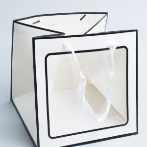 Сумочка крафт с прозрачным окном 30х30х30см, белый с черным
