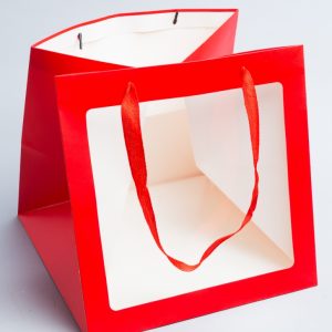 Сумочка пластик для цветов 22х10,5х13,5см 779 сердце с цветами