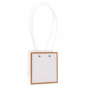 Пакет под цветы 11,5*10,5*13см Квадрат Белый с Золотой каймой и пластиковой ручкой т.м 250