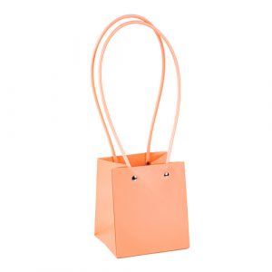 Пакет под цветы 11,5*10,5*13см Квадрат Персиковый с пластиковой ручкой т.м.250