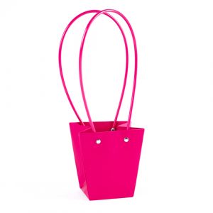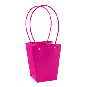 Пакет под цветы 17*20*11см Конус Фуксия с пластиковой ручкой т.м.250