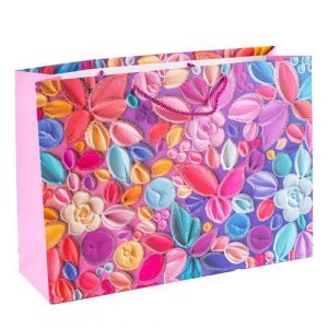 Пакет подарочный “Цветы” горизонтальный 43*31*14 см Пластилиновый букет