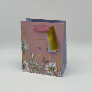 Пакет подарочный премиум ВС, 180*223*100мм., Счастья Птица на розовом