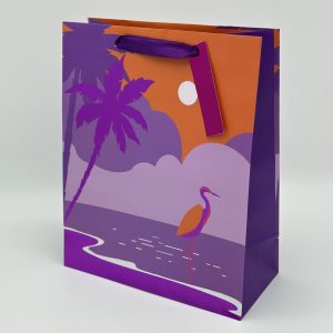 Пакет подарочный премиум ВС, 180*223*100мм., Цапля пальма ярко-розовый