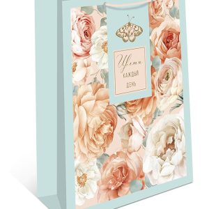 Пакет подарочный премиум ВС, 180*223*100мм., Счастья Цветы на голубом