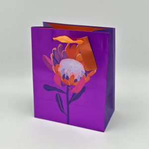 Пакет подарочный премиум ВС, 180*223*100мм., Цветок протеи на ярко-сиреневом металле