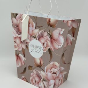 Пакет подарочный ТА 335*328мм. Трапеция. Розовые пионы на бежевом