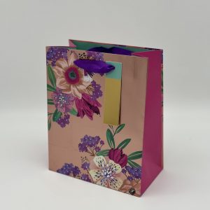 Пакет подарочный премиум ВС, 180*223*100мм., Цветы на розовом металле