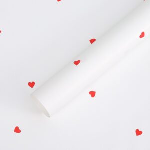 Упак. материал флористическая пленка “Валентинка”, 58 см x 10 м, 65 мкр. белый с красным