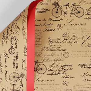 Упак. материал флористическая пленка “Винтажный велосипед”, 65 мкр, 58 см х 10 м, крафт