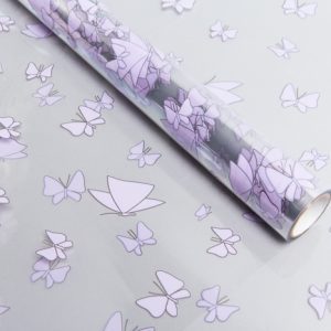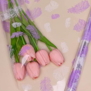Пленка цветная 60см Перышки белый/сиреневый светлый