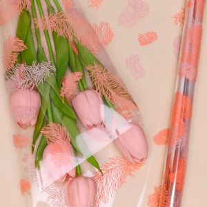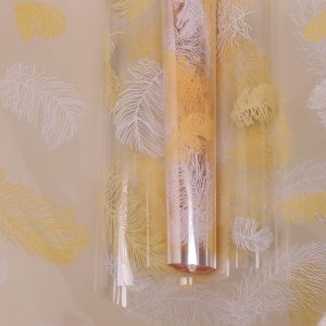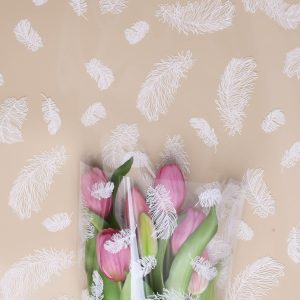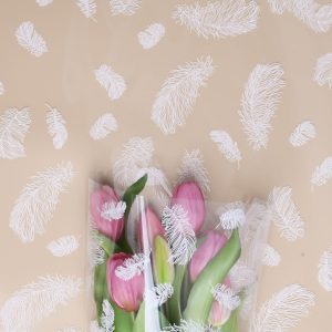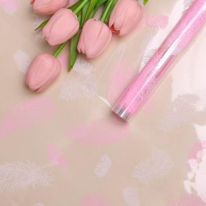 Пленка цветная 60см Перышки белый/розовый жемчуг