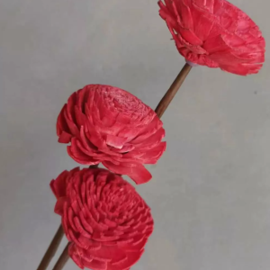 “Деревянный цветок мини Сола” ручной работы, длина 40-50 см, раз.цветка: 4 см, 3 шт/упак., красный