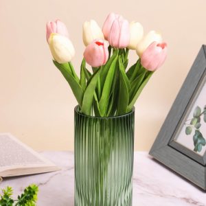 Ваза стекло h20 d10см К 204 рельефная изумруд