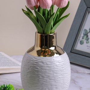 Ваза керамика 22х6х5см CN230425-24-66 золотое горлышко белый