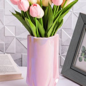 Ваза керамика 18х9,5х9,5см 8203D-07 Перламутр розовый